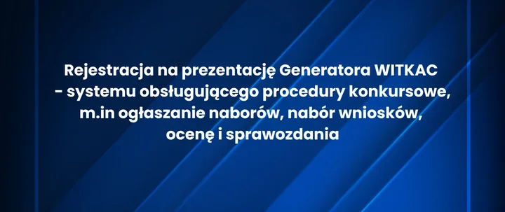 W Łodzi zaproszono przedstawicieli organizacji pozarządowych na prezentację systemu, który ma usprawnić obsługę konkursów dotacyjnych. Podczas spotkania zaprezentowany zostanie Generator WITKAC, narzędzie do prowadzenia procedur związanych z ogłaszaniem naborów, przyjmowaniem wniosków, ich oceną oraz raportowaniem. Prezentacja odbędzie się w formule online, a organizator udostępnił możliwość rejestracji przez internet.